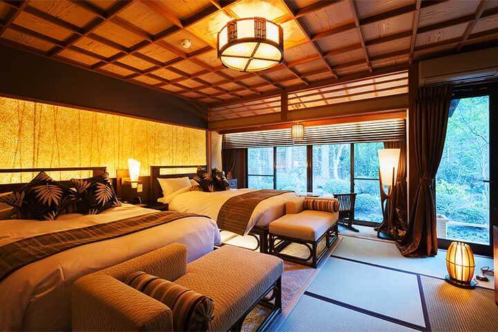 お部屋は10畳の主寝室がメイン。テラスでは中央アルプスの雪解け水、「季の川」がそうそうと流れる音に身をまかせ、駒ヶ根高原の大自然に包まれる気分を味わっていただけます。