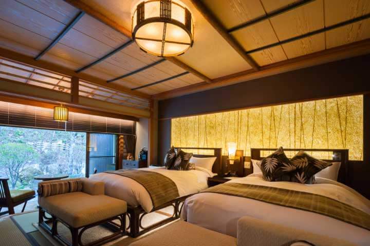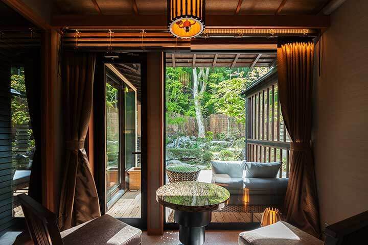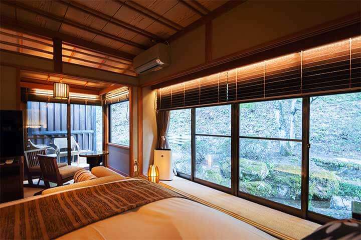 季澄香の基本となるお部屋で、それぞれに趣の違う4部屋をご用意。お部屋ごとに設けた半露天風呂とテラスが森に近いので、森の香りとさわやかな高原の風を感じることができるお部屋です。