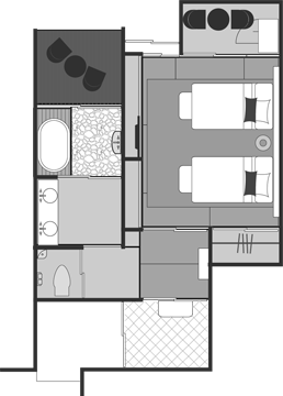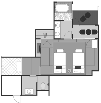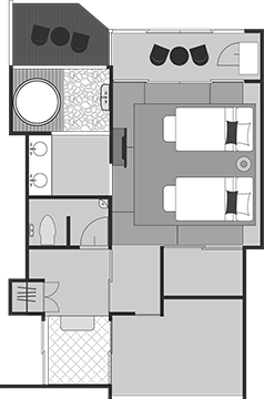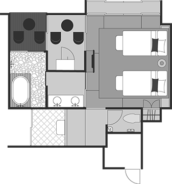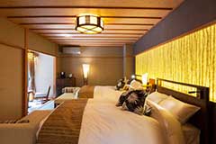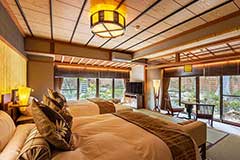 季澄香の基本となるお部屋で、それぞれに趣の違う4部屋をご用意。お部屋ごとに設けた半露天風呂とテラスが森に近いので、森の香りとさわやかな高原の風を感じることができるお部屋です。